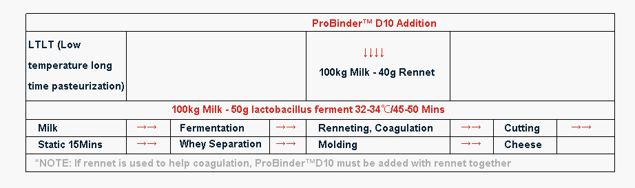 Transglutaminase is designed to improve the properties of final products. Foodchem’s ProBinder™ series are functional formulations based on the Transglutaminase. ProBinder™ D10 is used in dairy products.ProBinder™ D10 Advantages: improves cheese yield, increases and improves texture, reduces syneresis.