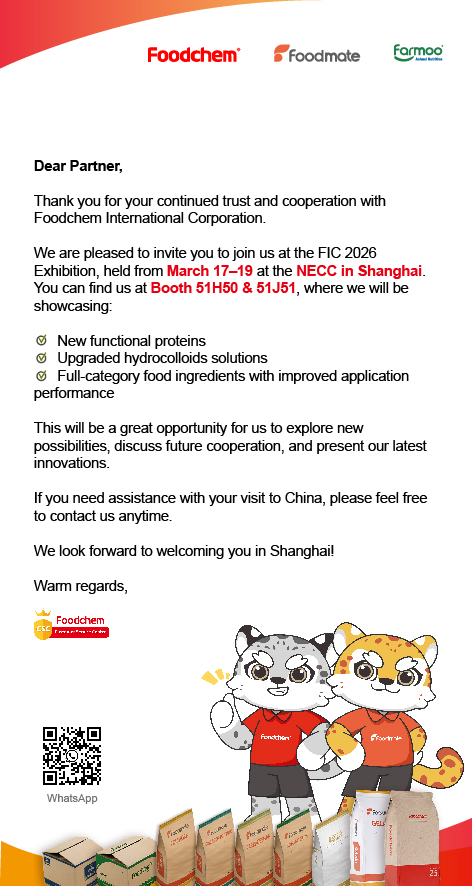 2026 marks a significant milestone for Foodchem International Corporation—the company’s 20th anniversary since its founding in 2006. In this special year, Foodchem is honored to announce its participation in Food Ingredients China (FIC) 2026, the most authoritative and innovation-driven food ingredients exhibition in Asia.