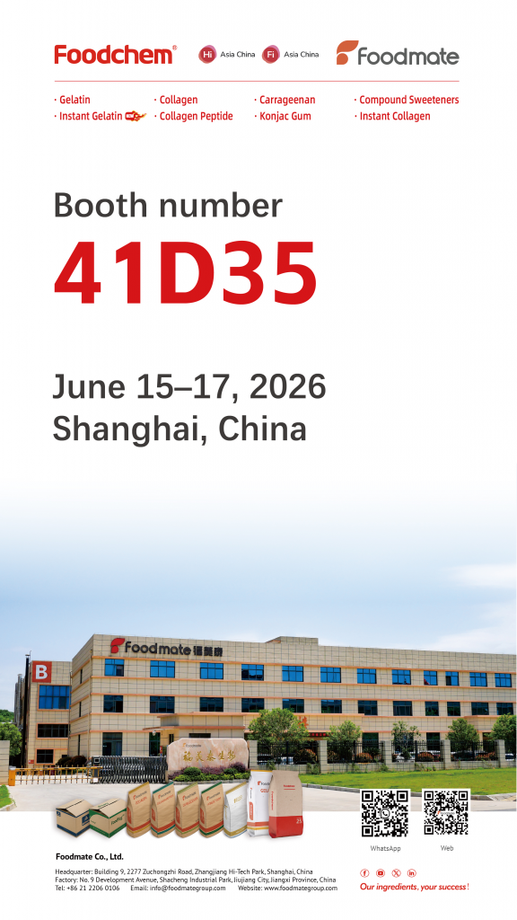 - Advanced Hydrocolloid Systems: We presented our upgraded range, including premium gelatin, carrageenan, and ready-to-use stabilizer blends from Foodmate. These solutions offer precise texture control for confectionery, dairy, meat, and beverages.